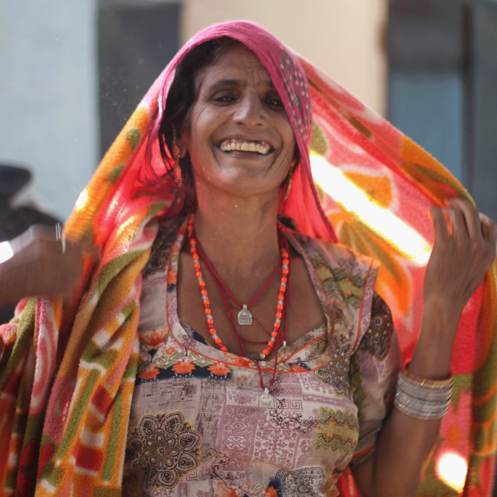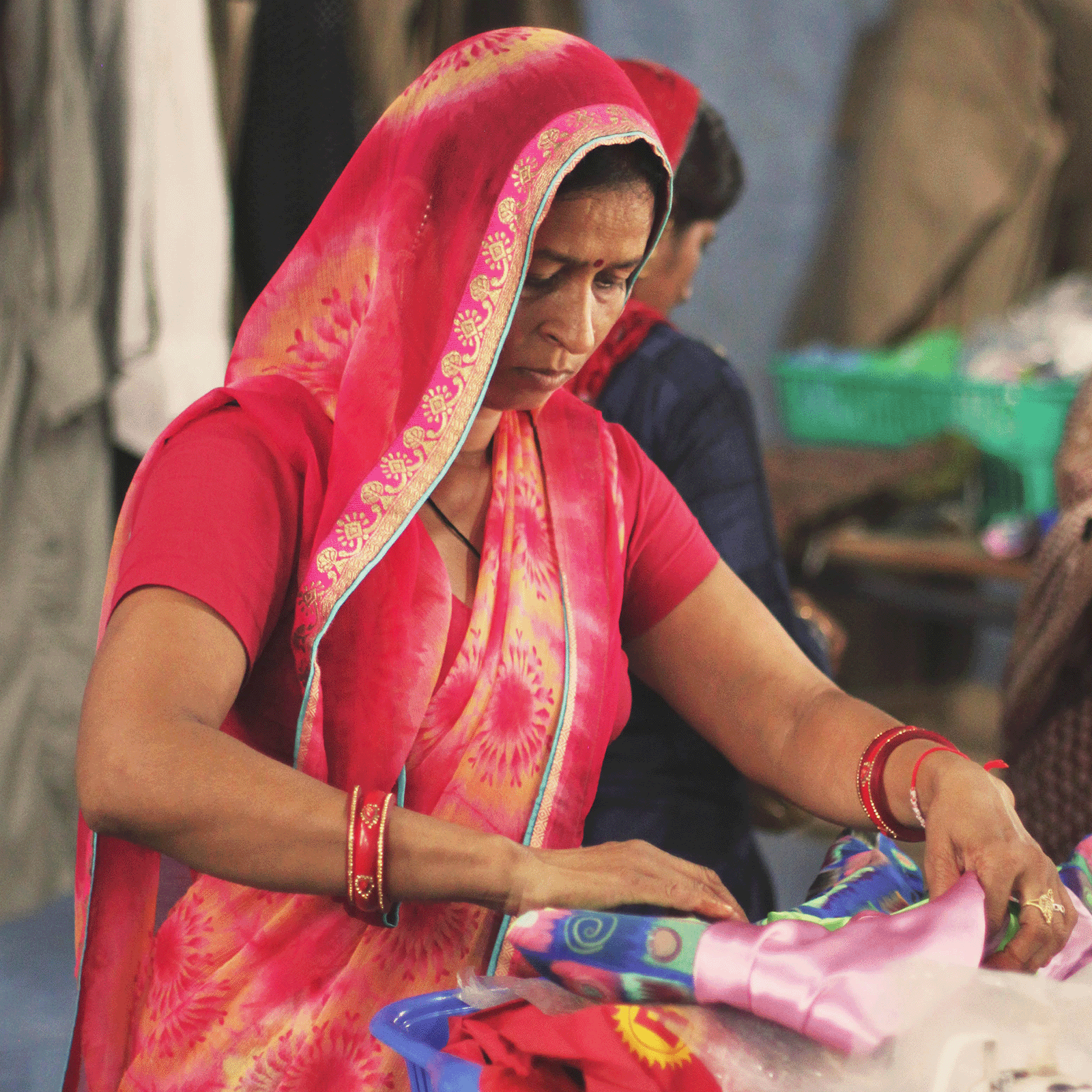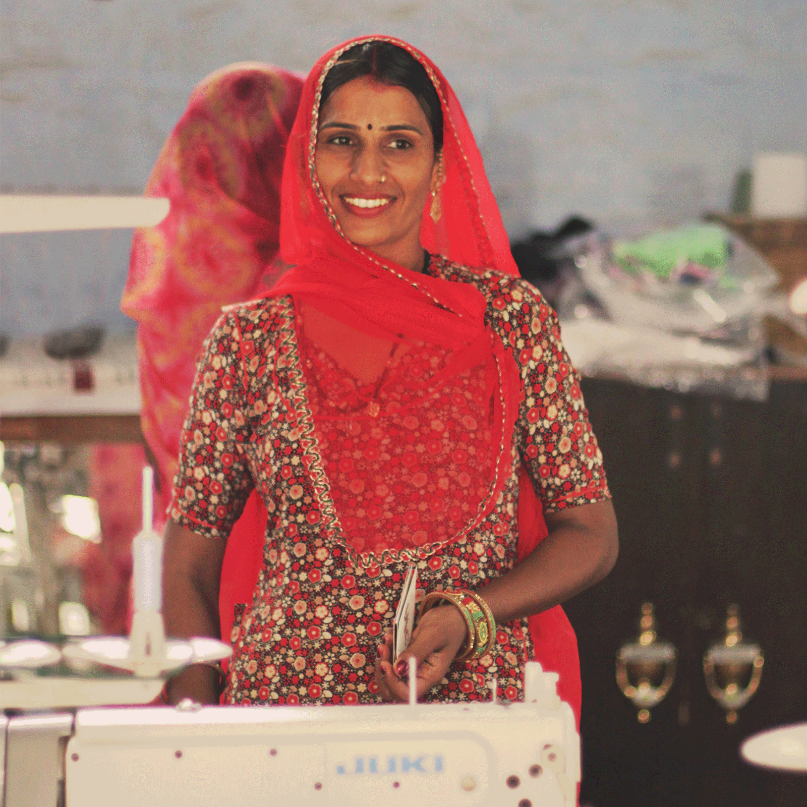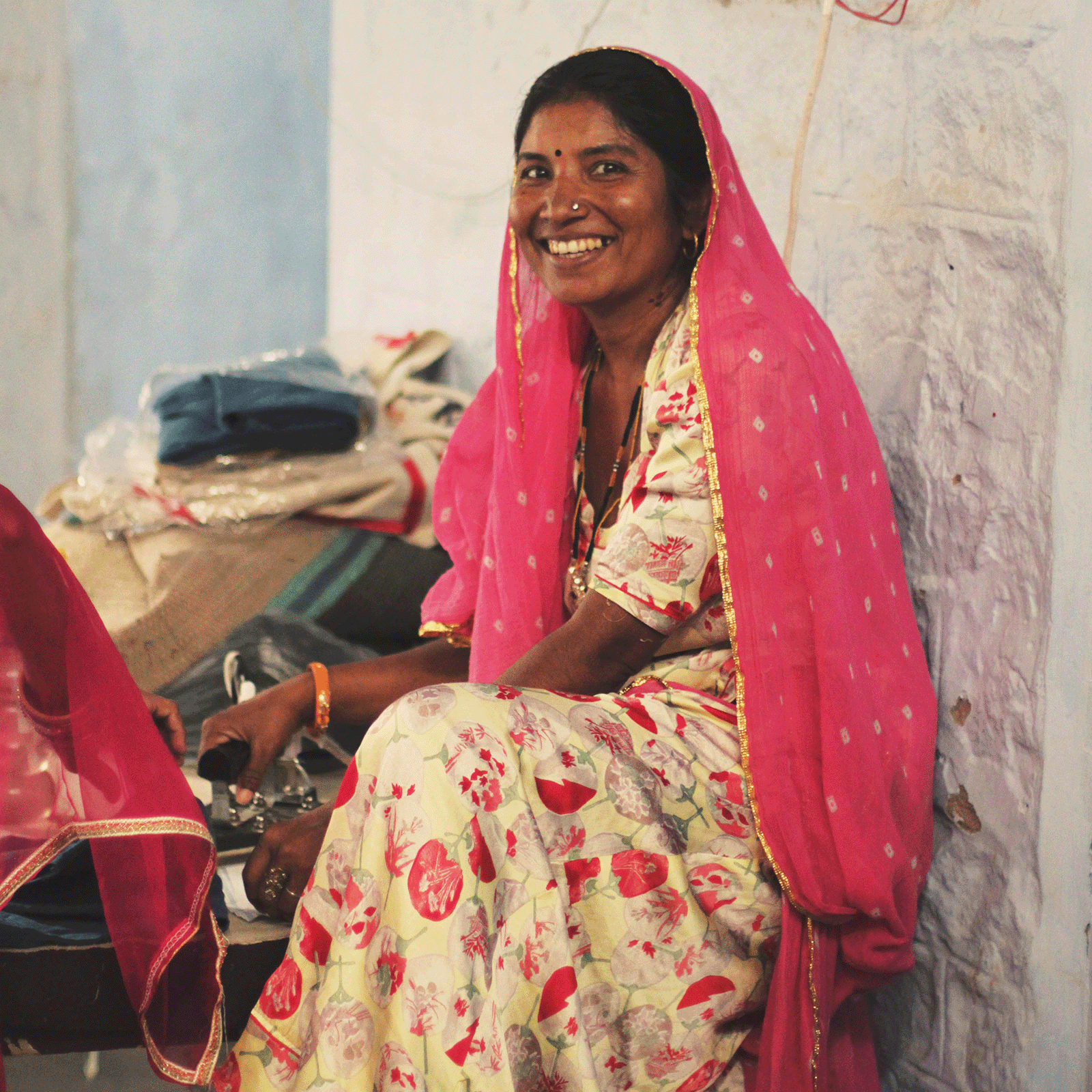One of our collaborators is Saheli Women, a women’s collective and ethical fashion enterprise located in the desert village of Bhikamkor, Rajasthan in northern India. Started in 2015 by an ambitious local social worker called Madhu, Saheli Women now employs over 100 village women, empowering them and supporting their families.