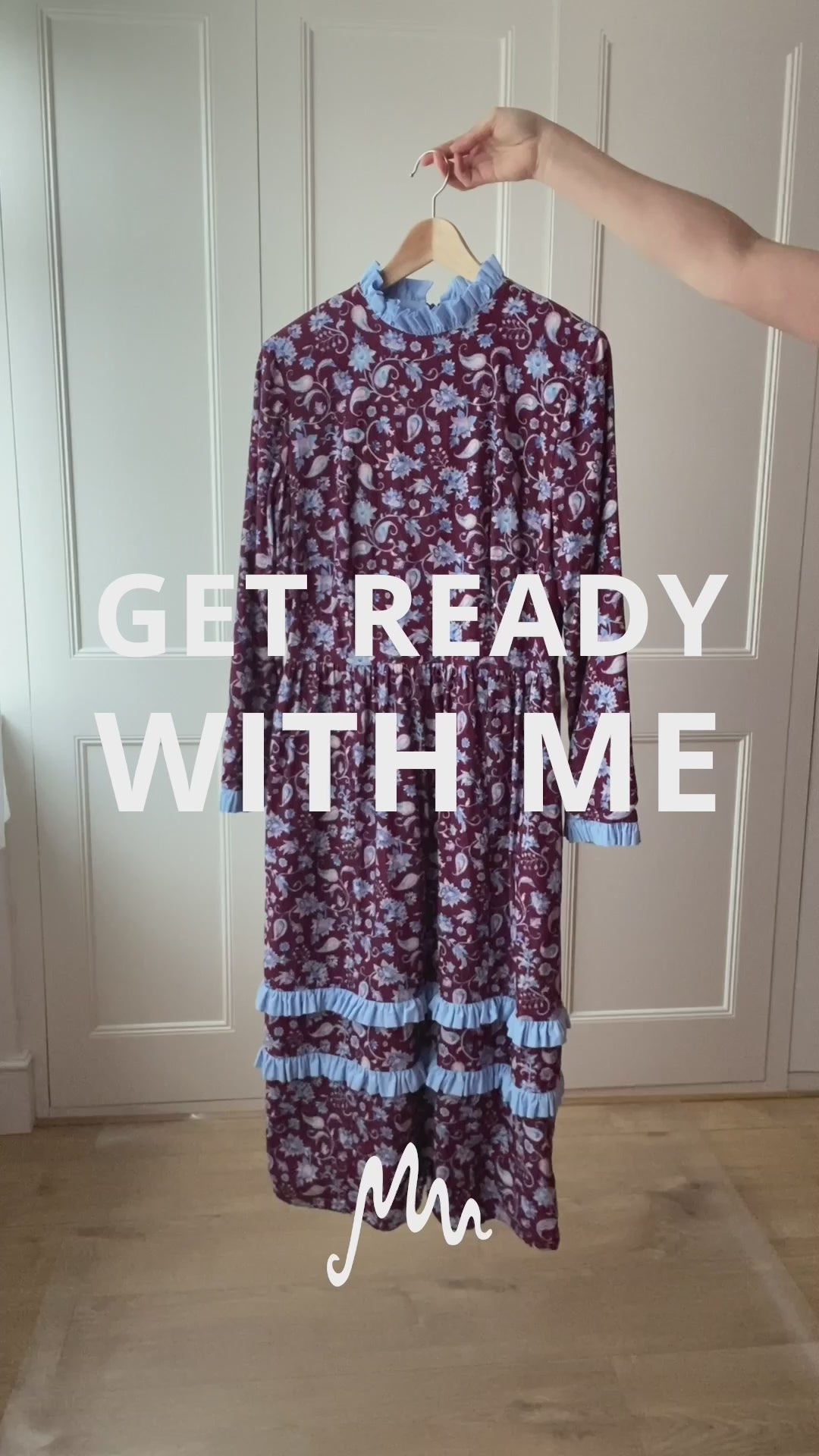 The Padma dress combines a high-neck fitted bodice with long sleeves and a gently gathered midi length skirt for an polished autumnal look. With a pastel paisley print on soft burgundy needlecord and contrast frill details in sky blue, Padma will keep you cosy through chilly days. And she has pockets, of course!